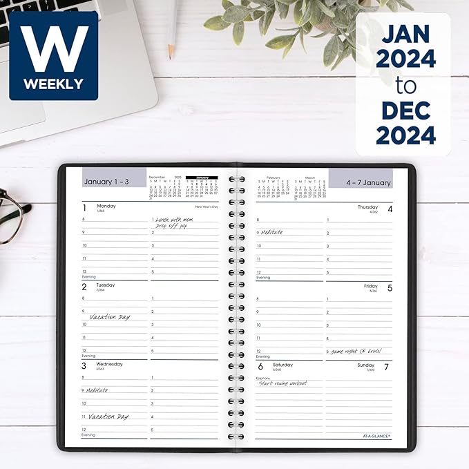 AT-A-GLANCE 2024 Weekly Appointment Book & Planner, DayMinder, 5" x 8", Small, Spiral Bound, Black (G2000024)