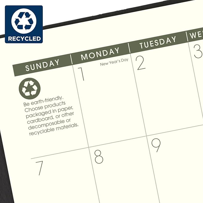 - RECYCLED MATERIALS - Make an environmentally conscious choice with a planner made from post-consumer waste recycled materials. This planner features 100% recycled paper and a 50% recycled cover.
