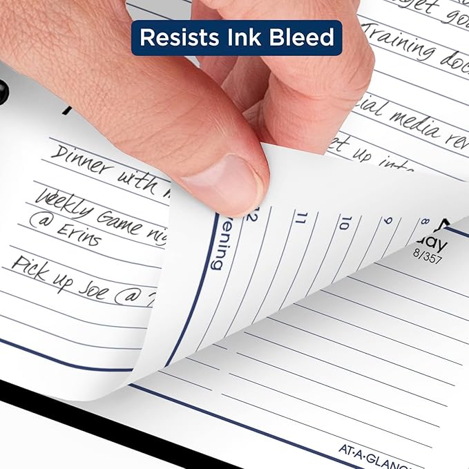 - INK BLEED RESISTANCE - Plan your schedule without fear of distracting ink bleeding. Our improved, high-quality paper is designed for superior ink bleed resistance, which keeps plans neat and legible.