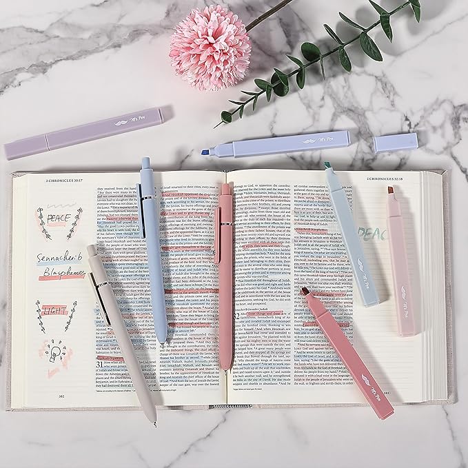 Mr. Pen Aesthetic Gel Pens & Highlighters No Bleed, 10 Pack - Morandi Color Bible Pens, Black Ink