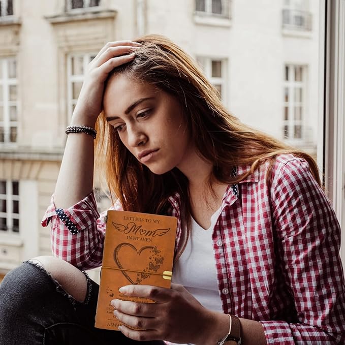 Vetbuosa Letter to Mom in Heaven Leather Journal,Memorial Gifts for Loss of Mom,Loss of a Mother Sympathy Gifts,Bereavement Gift Idea,In Memory of Loved One Gifts