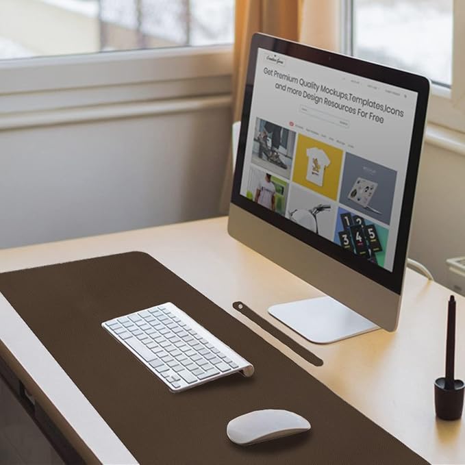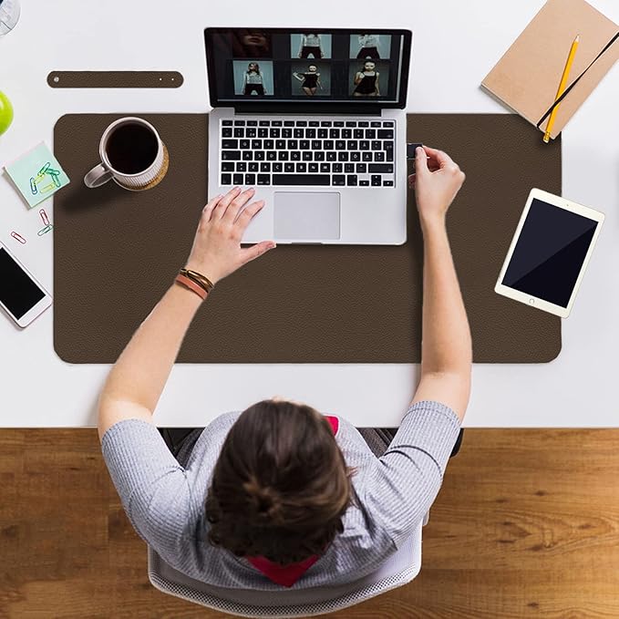 Boutilon Leather Desk Pad 24"x 14" Non-Slip Mouse Pad,Office Desk Mat,Waterprooft PU Leather Desk Blotter,Desk Pad Protector,Desk Writing Pad for Home Office Decor (S-Coffee)