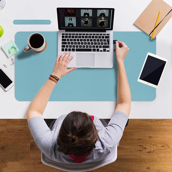 Boutilon Leather Desk Pad 24"x 14" Non-Slip Mouse Pad,Office Desk Mat,Waterprooft PU Leather Desk Blotter,Desk Pad Protector,Desk Writing Pad for Home Office Decor (S-Light Blue)