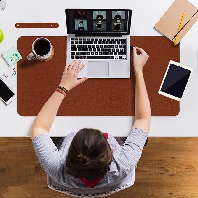 Boutilon Leather Desk Pad 24"x 14" Non-Slip Mouse Pad,Office Desk Mat,Waterprooft PU Leather Desk Blotter,Desk Pad Protector,Desk Writing Pad for Home Office Decor (S-Brown)