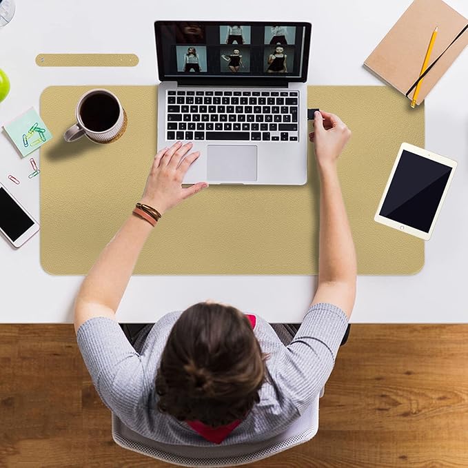 Boutilon Leather Desk Pad 35"x 17" Non-Slip Mouse Pad,Office Desk Mat,Waterprooft PU Leather Desk Blotter,Desk Pad Protector,Desk Writing Pad for Home Office Decor (L-Golden,35"x 17")