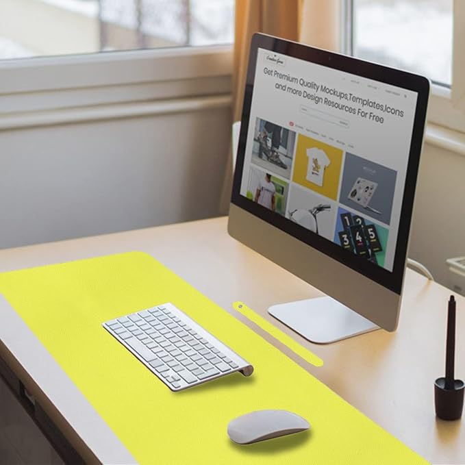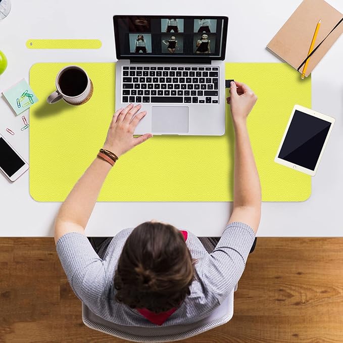 Boutilon Leather Desk Pad 24"x 14" Non-Slip Mouse Pad,Office Desk Mat,Waterprooft PU Leather Desk Blotter,Desk Pad Protector,Desk Writing Pad for Home Office Decor (S-Lemon)