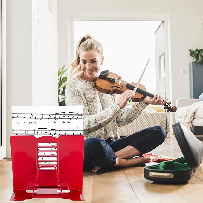 Full Red Metal Book Stand - Adjustable Book Holder for Reading