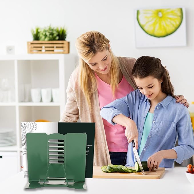 Metal Book Stand - Adjustable Book Holder for Reading (Full Green)
