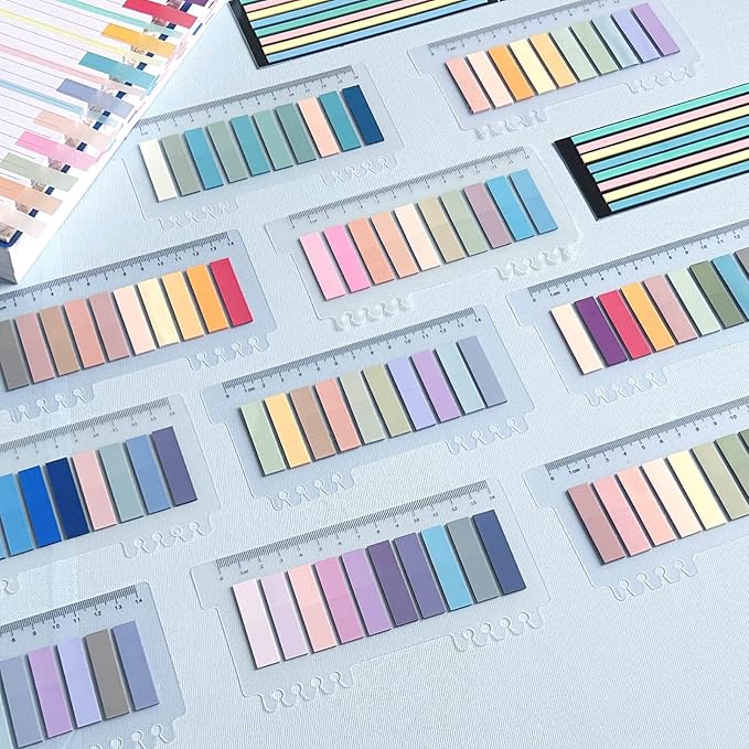 - Mega-Value Set of Book Tabs: 6 sets of 1120 pieces Morandi book tabs for annotating books( 4 sets sticky tabs with ruler+ 2 sets transparent highlighter tape), Numbers of cute colors can help you find and locate information quickly, and organize categories by color flexibly, keeps you organized for work