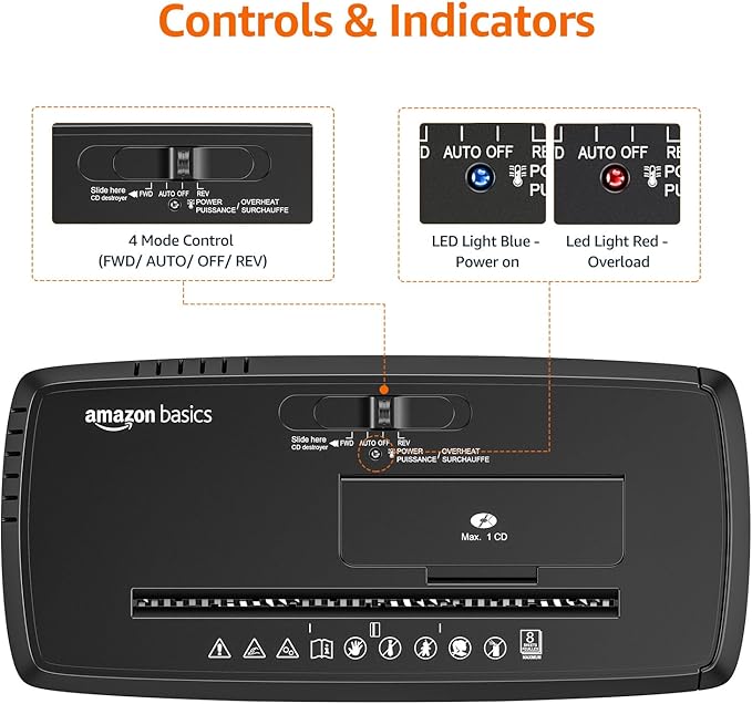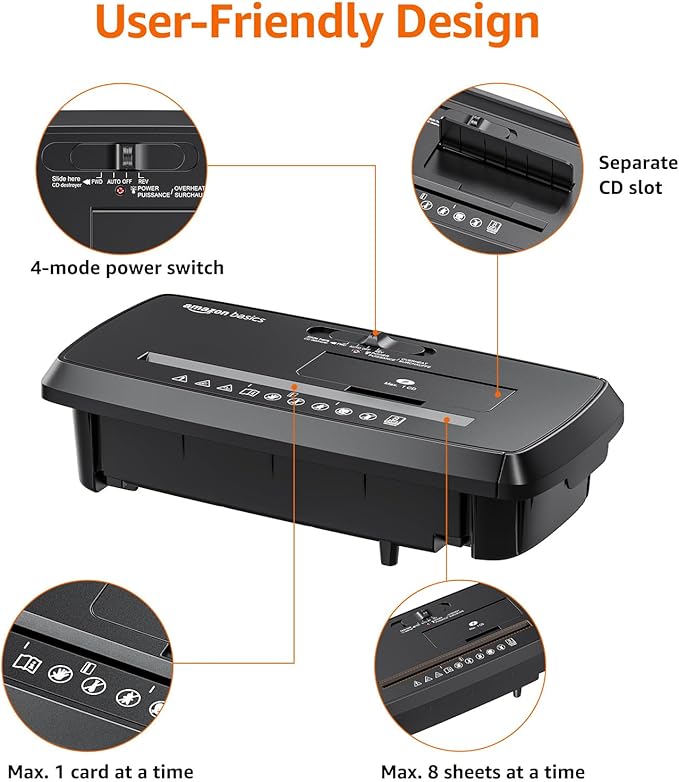 - Amazon Basics quality tests every shredder before shipping; you may see some paper shreds from the testing