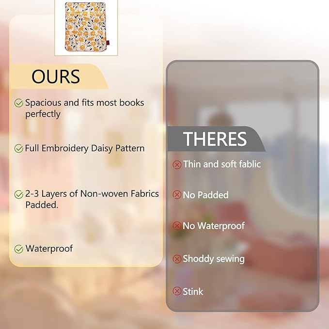 - Yellow Daisy Flower Embroidery Book dust jacket covers : This book cover is a hand embroidered item rather than a printed one. Both sides of the book cover protector are embroidered with beautiful daisy pattern, which is layered, nice and soft to the touch and comfortable, and the embroidery thread is brightly coloured and does not fade easily. If you have someone close to you who has a love of daisy, the beautiful daisy flower pattern is sure to bring great surprise and pleasure to him or her.