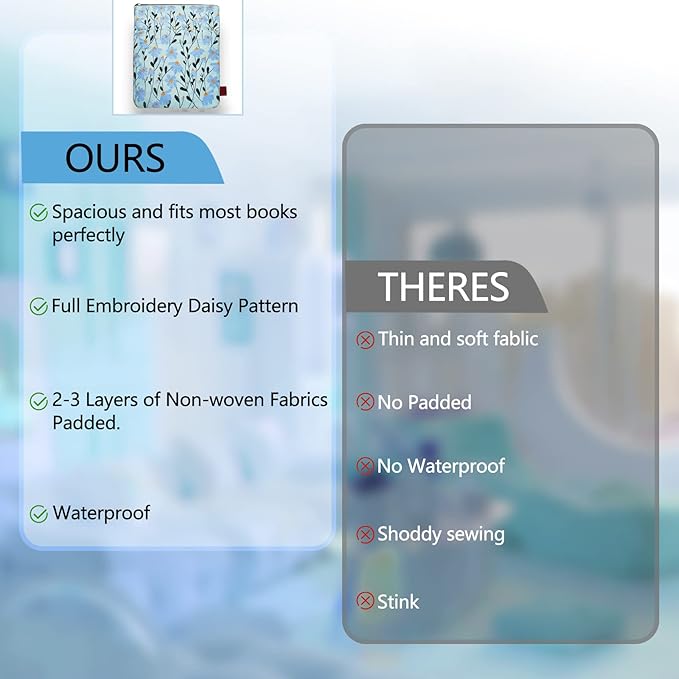 - Blue Daisy Flower Embroidery Book dust jacket covers : This book cover is a hand embroidered item rather than a printed one. Both sides of the book cover protector are embroidered with beautiful daisy pattern, which is layered, nice and soft to the touch and comfortable, and the embroidery thread is brightly coloured and does not fade easily. If you have someone close to you who has a love of daisy, the beautiful daisy flower pattern is sure to bring great surprise and pleasure to him or her.