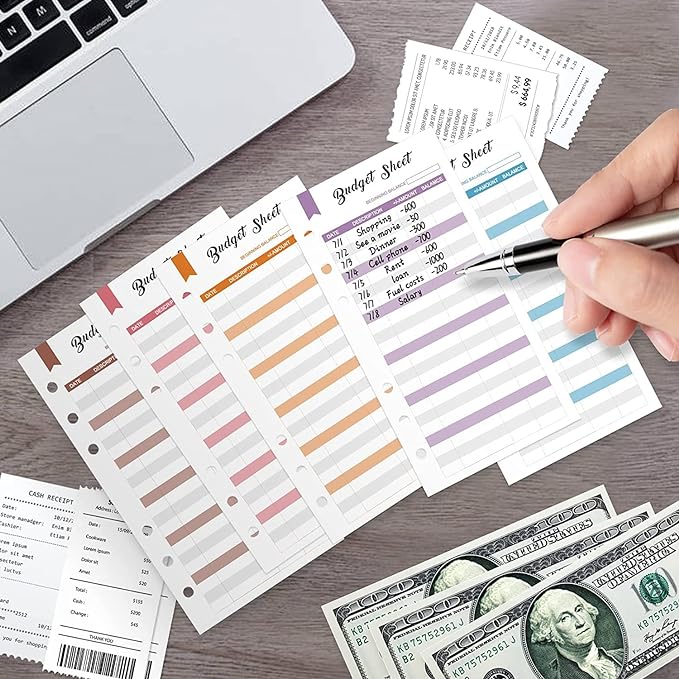 - 【Complete Set】The set also includes 8 clear zip pockets, 12 budget sheets with 6 holes, and a colorful 24-stickers. There are 24 stickers in total, with 8 different colors. You can mark and organize budget items with stickers of the same or similar colors.