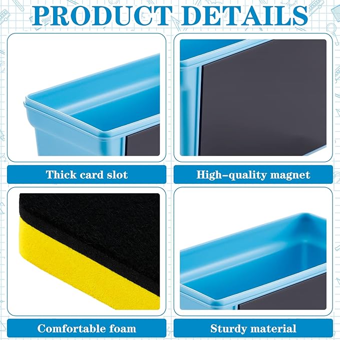 - Magnetic plastic holder: in the back of box with magnet for being attached on the whiteboard, improve your working efficiency and save the room for storage, plastic-made box that is lightweight and durable for long time using