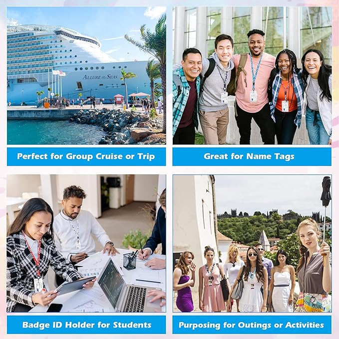 - 【Fits All Major Cruise Lines Key Cards】: Our 4 pcs retractable cruise lanyard size about 0.75IN (2 CM) width, 19.5IN (50 CM) length from neck to top of badge clip, and equipment with a waterproof PVC ID badge holder: 2.75*4.33 IN (7*11 CM), fits Princess, Norwegian, Carnival, Royal Caribbean, Celebrity, Holland America and all other major cruise line ship cards