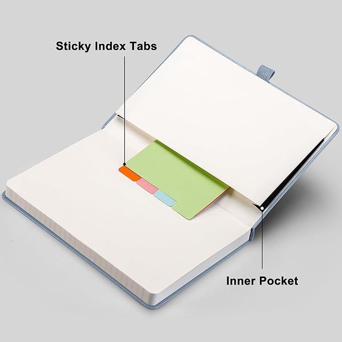 - LINED JOURNAL NOTEBOOK: RETTACY Lined Journal Notebook comes in a A5 (5.7'' × 8.3'') size, 192 Numbered Pages, waterproof and smooth Leather Hardcover, 7 mm college ruled writing space, 100 GSM Thick Acid-free Paper, Pen Holder, Elastic Closure Band, 2 Ribbon Bookmarks, Inner Pocket, Sticky Notes