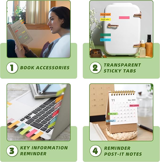 - 【Classification and Key Reminders】In the mass information and study, life and work, transparent annotation supplies can help you sort out your thoughts, highlight key points, establish a list of key points, help you quickly find and locate information, and greatly improve the efficiency of study and work. In life, index tabs can be posted it tabs on refrigerators, tables, mirrors, desks, dining tables, gift boxes, etc. as important reminders.