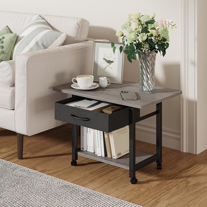 - 【2-Tier Printer Stand with Storage】Printer table with drawer provide a privacy space to place your desk office items. 2-Tier open shelves offer ample storage space for paper reams,file folder,ink cartridge and pen holder etc. Printer stand can ensure a clutter-free workspace and improved organization.