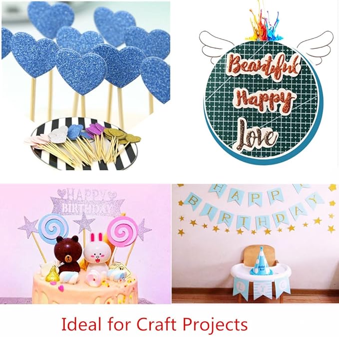 - Wide Application: The glitter cardstock can be easily applied with cutting machine to make cup cake toppers, greeting cards, party invitaitons,signs, scrapbooking, gift wrapping and much more. They are great for home decoration and all kinds of events decorating, such as wedding, birthday party, baby showers.