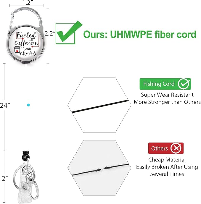 Gctriki Badge Reel Holder Retractable Heavy Duty with 360° Swivel Carabiner Clip, Funny Fueled by Caffeine and Chaos ID Holder Name Badge Clip RN Nurse Medical Badge Reel Retractable Keychain ID Clip
