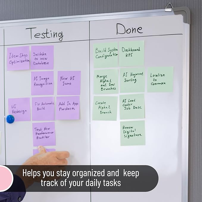 - Each sticky note measures 3”x3”, providing ample space for quick notes, reminders, or short to-do lists.