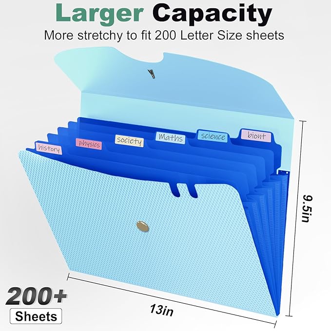 - Expand Sufficiently & Larger Capacity: This accordion folder with expandable spine design is more stretchy to fit over 250 sheets without bulking up too much. You can throw loose-leaf papers, folders, or even small notebooks in here.