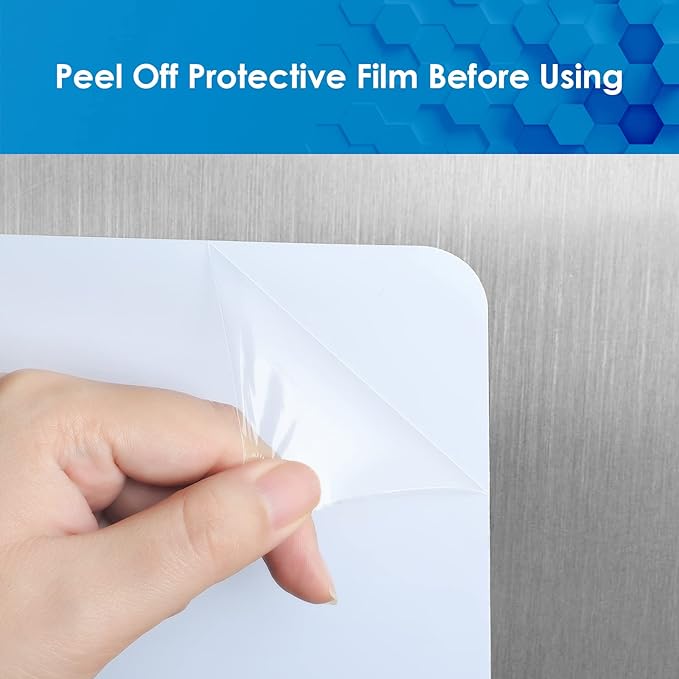 - Strong Magnetic Whiteboard: The dry erase board has strong magnetic on metal surfaces and because of it's thickness it does not to make creases when handled. This whiteboard is guaranteed to stick to any flat metal surface without sliding or falling like other boards, and because of it's nicely finished rounded corners it can be easily removed. It is very flexible, and easy to fit on the fridge. (Note:it is not suitable for non-magnetic stainless steel fridge)