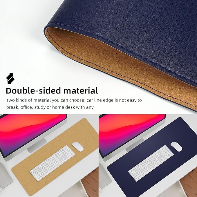- Elevate Your Workspace: Our reversible desk pad is designed to complement any office or home desk with its premium materials and elegant black thread stitching. The natural cork base provides extra grip to keep your desk mat in place.