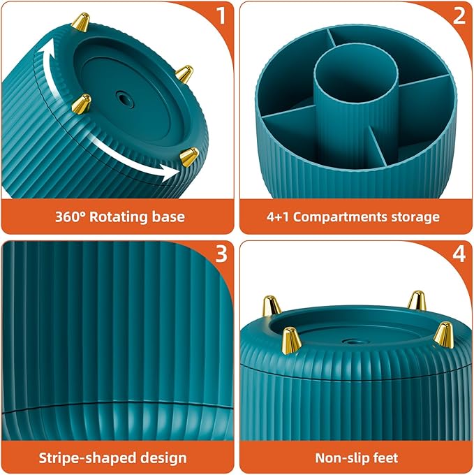- 【Multipurpose Desktop Organizer】: This rotating storage organizer is perfect for pencils, cosmetics, bathroom necessities, toiletries, and even kitchen utensils. Try it in your craft room, playroom, laundry/utility room, and even inside bathroom cabinets or under the sink; Store extra office supplies like painting pens, correction tape, scissors, TV Remote, and more; Even headphones or a charger will no longer be lying around in the future! Maximize your vertical space and keep your desk clear