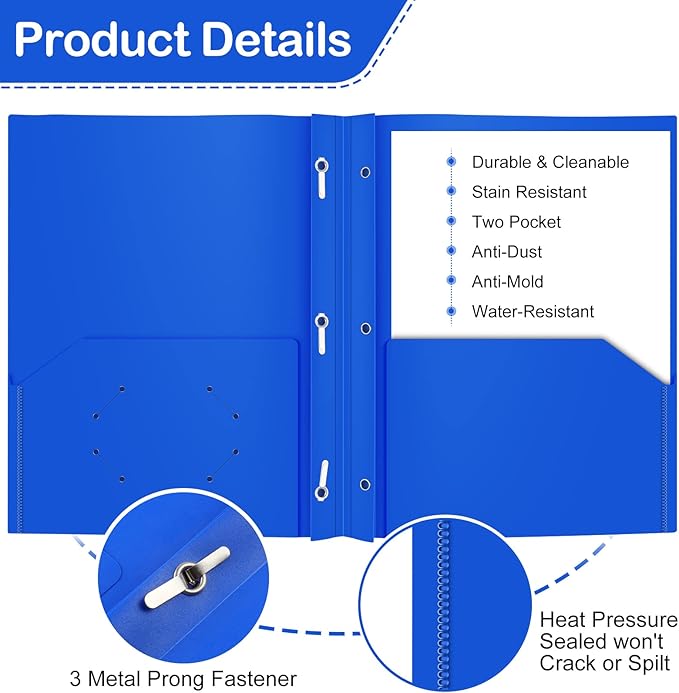- 2 pockets poly folder fit 8.5 x 11 in paper, 100+ sheet capacity for each pocket, 3 prong fasteners hold 50+ sheet.