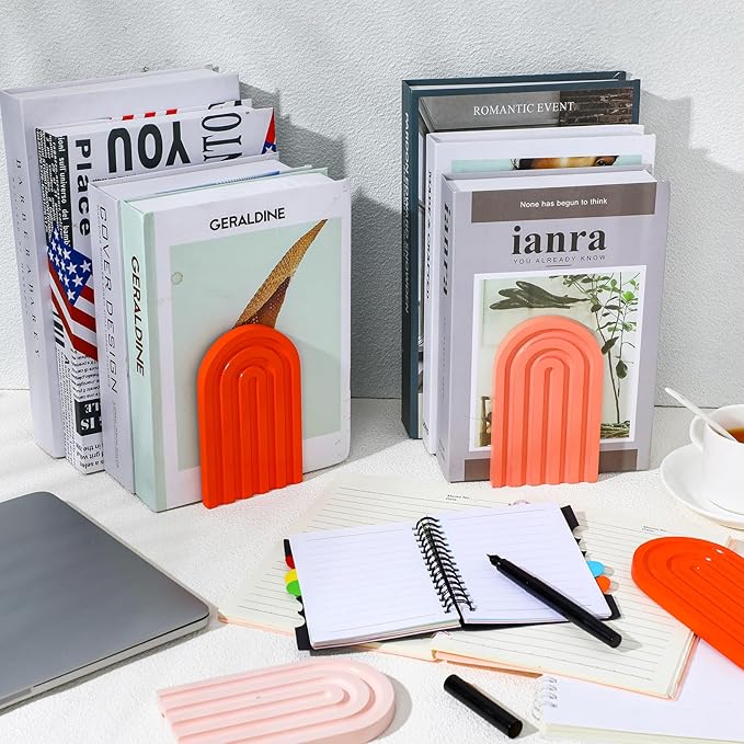 - Bohemian and Minimalist Design: our non-slip bookends are designed with rainbow shapes and 4 beautiful color systems, each with exquisite carvings, which can add elegance, simplicity and natural style to your bookshelf, decorate your office and study room