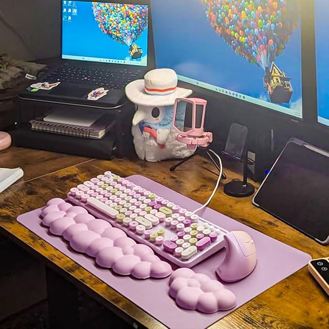 - ✔【Cute and Aesthetic Cloud】Included keyboard wrist, mouse rest and cup pad, and the cloud-shaped pad is very unique&good-looking and enhances the user's experience, designed for office and home