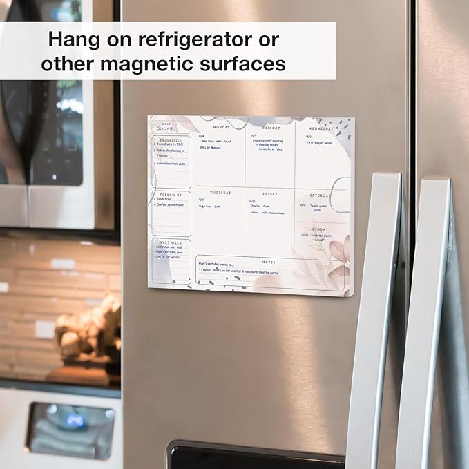 - MAGNETIC CONVENIENCE - Equipped with rear magnets, this To-Do List and Weekly Planning Pad effortlessly adheres to any magnetic surface such as refrigerators, magnetic boards, or metal cabinets. Keep your tasks prominently displayed for easy access and efficient task execution.