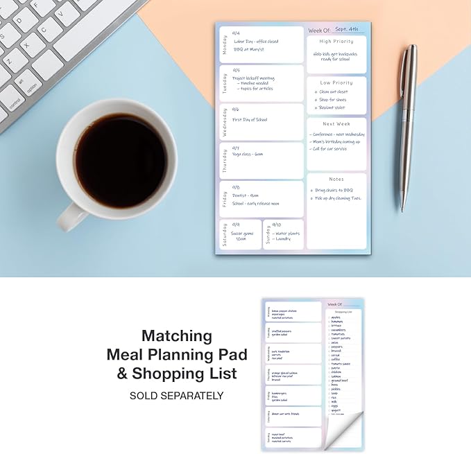 - ABUNDANT PLANNING SPACE - With 60 sheets per pad, you have ample space to plan and manage your tasks for multiple weeks in advance. This helps you maintain a clear overview of your immediate goals and long-term commitments.