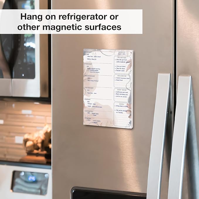 - MAGNETIC CONVENIENCE - Equipped with rear magnets, this To-Do List and Weekly Planning Pad effortlessly adheres to any magnetic surface such as refrigerators, magnetic boards, or metal cabinets. Keep your tasks prominently displayed for easy access and efficient task execution.