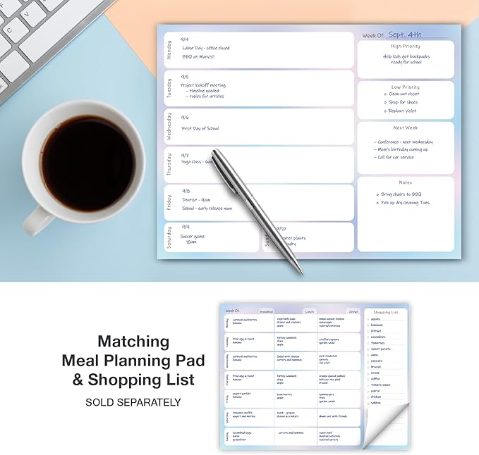 - ABUNDANT PLANNING SPACE - With 60 sheets per pad, you have ample space to plan and manage your tasks for multiple weeks in advance. This helps you maintain a clear overview of your immediate goals and long-term commitments.