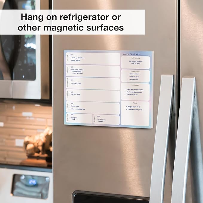 - MAGNETIC CONVENIENCE - Equipped with rear magnets, this To-Do List and Weekly Planning Pad effortlessly adheres to any magnetic surface such as refrigerators, magnetic boards, or metal cabinets. Keep your tasks prominently displayed for easy access and efficient task execution.