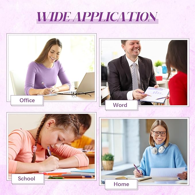 - Purple Office Accessories Set: the package contains 1 piece of bling purple pen holder for desk PU leather and 8 pieces of purple pens in 4 designs, 2 pieces for each design, put them together on your desk to make your desk look stylish and attractive
