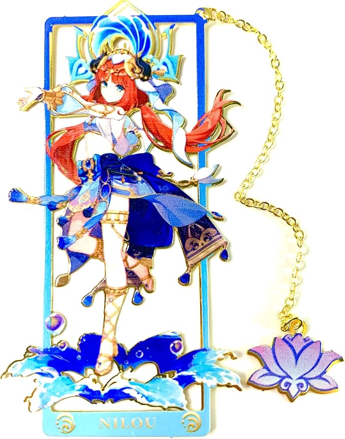 - Immerse yourself in the enchanting world of Genshin Impact with these exquisite Nilou brass bookmarks, inspired by the beloved anime game, featuring a captivating Quadratic element design