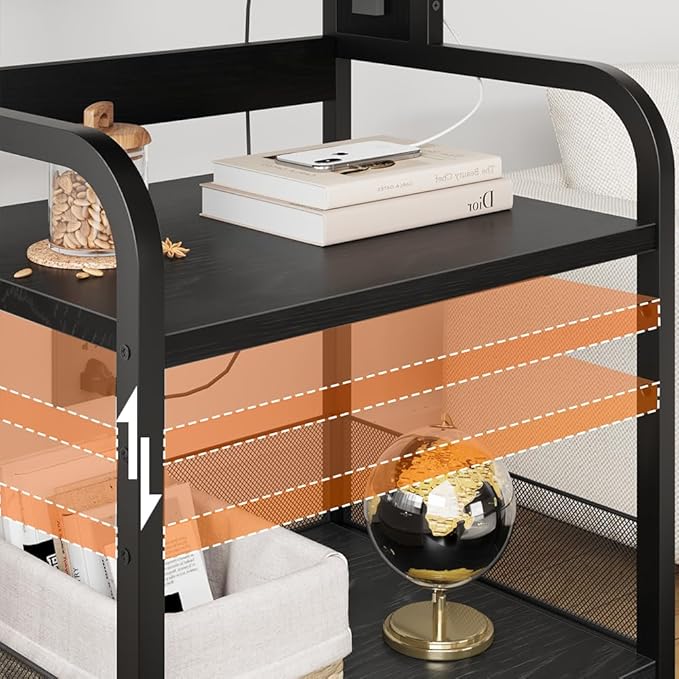 - LARGE STORAGE SPACE WITH ADJUSTABLE SHELF: The widened and deepened table top allows you to place large printer or scanner. The middle shelf of this printer table is height adjustable with 3 levels, so you can customize the space between the top and middle shelf. It is also a pleasing addition to keep your books, printing paper, and toner. It is not only a printer table, but also a side table or nightstand, suitable for various scenes like your office, bedroom, or living room, to meet all your needs. Size: 15.7” L x 20.4” W x 31.4” H.
