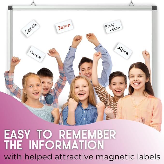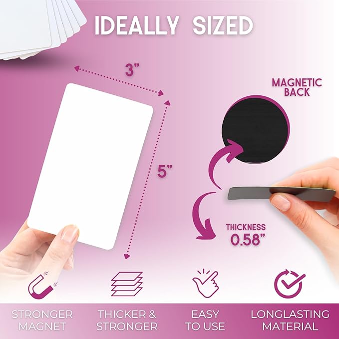 - High-quality Material: The magnetic dry-erase labels have a white writable front, made of laminated art paper, dry-erasable, and a 0.04 inches thickness strontium magnet, on the back for a powerful adhesion to various surfaces; Each label measures 5 x 3 inches;