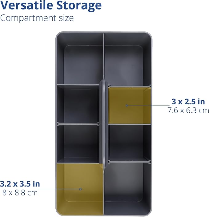 - ADJUSTABLE STORAGE – The caddy comes with 3 removable dividers, giving you the flexibility to store items of different sizes, making it a customizable solution for all your storage needs.