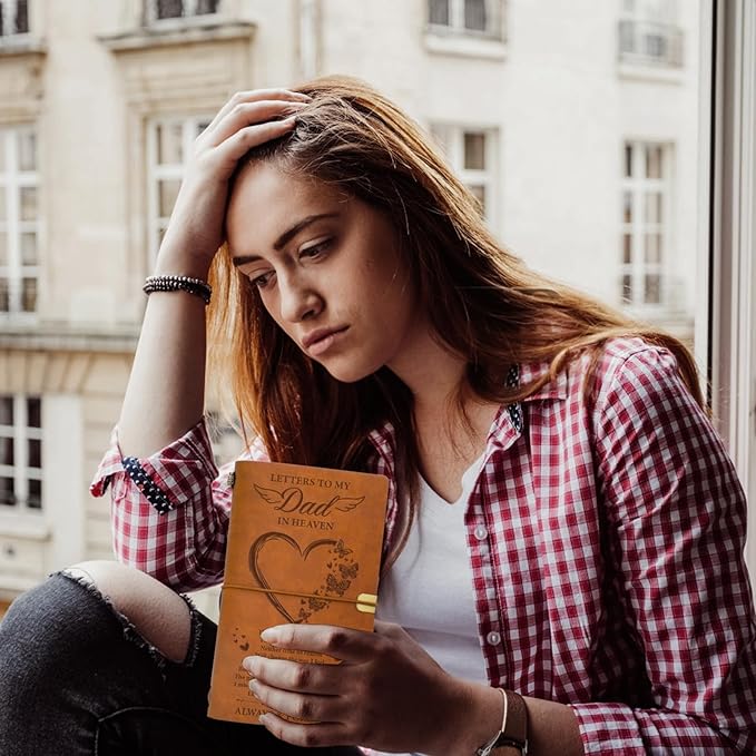 Vetbuosa Letter to Dad in Heaven Leather Journal,Memorial Gifts for Loss of Dad,Bereavement Gifts for Loss of Father,Bereavement Gift Idea,In Memory of Loved One Gifts
