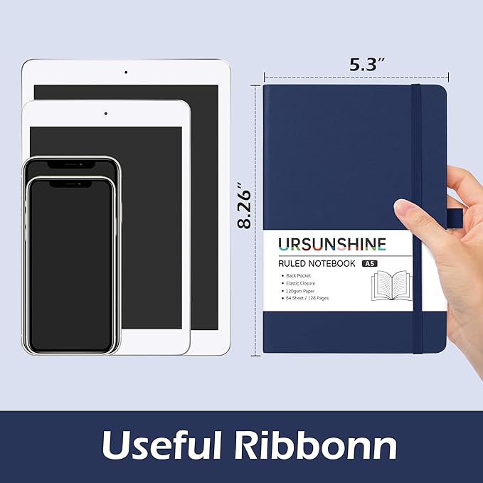 Ruled Notebook/Journal - Classic Lined Journal/Notebook, 5.3'' x 8.26'', Hardcover with Thick Paper, Banded + Pen Holder +Inner Pocket - Dark Blue