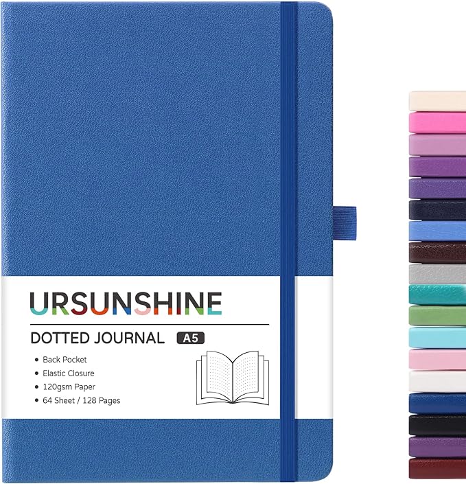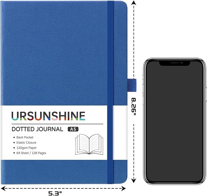 - PREMIUM THICK PAPER - 120 gsm dotted paper, our notebook journal is made of high quality acid free paper to help prevent from damages of light and airs to keep notes on the pages clearly. There are 128 pages/64 sheets in this ruled journal, which provide you with plenty space for planning or scheduling.