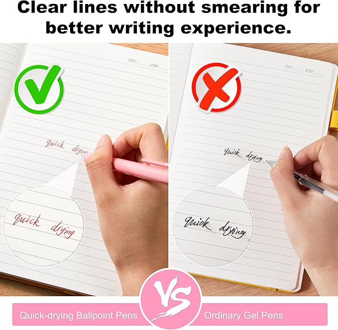 - SMOOTH WRITING & QUICK DRYING: The optimized ballpoint with premium ink delivers skip-free glides all the time. High quality ink dries quickly, so there will be no smearing or bleeding during writing.