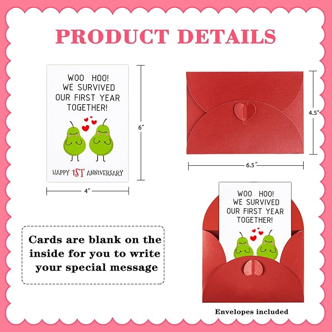 - 【Funny 1st Anniversary Cards for Him Her】: The wedding anniversary cards measures about 4 x 6 inches with a coordinating 4.5"x6.5"envelope,great funny one year wedding or dating cards for her him husband boyfriend girlfriend fiance men women wife.