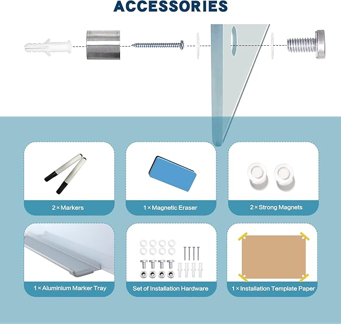 - Easy to Install: Glass Whiteboard Magnetic Dry Erase White Board is easy to install. Through the assembly instructions provided by us, you can easily install the whiteboard vertically or horizontally on the wall.