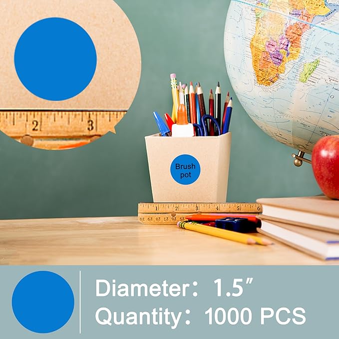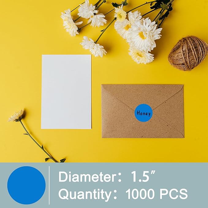 Hybsk 1.5 inch Circle Color Direct Thermal Stickers Shipping Labels for Barcodes,Name Tag,DIY Logo Design,Inventory– Compatible with Zebra,Rollo,Munbyn,and More-1000 pcs (1.5 inch,Blue)