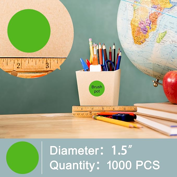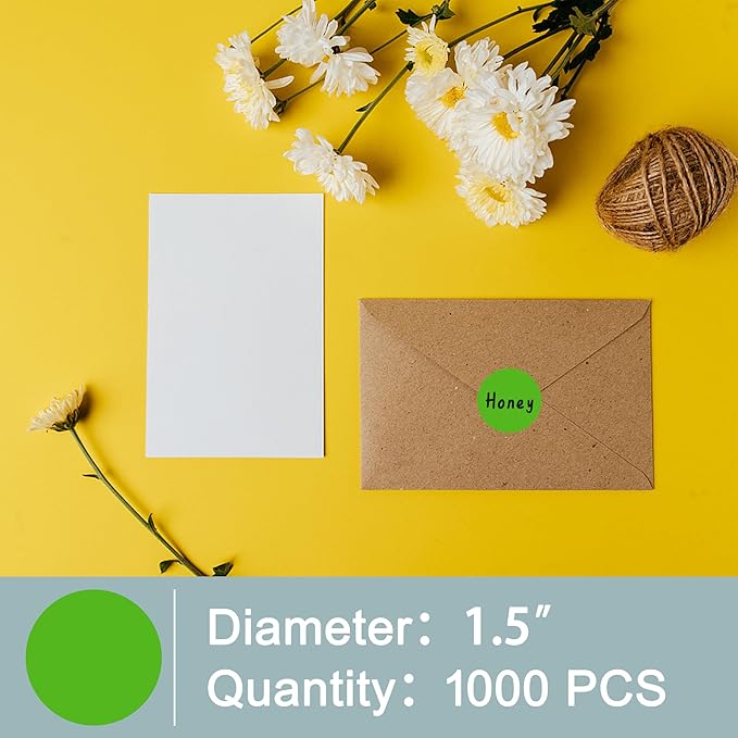 Hybsk 1.5 inch Circle Color Direct Thermal Stickers Shipping Labels for Barcodes,Name Tag,DIY Logo Design,Inventory– Compatible with Zebra,Rollo,Munbyn,and More-1000 pcs (1.5 inch,Green)